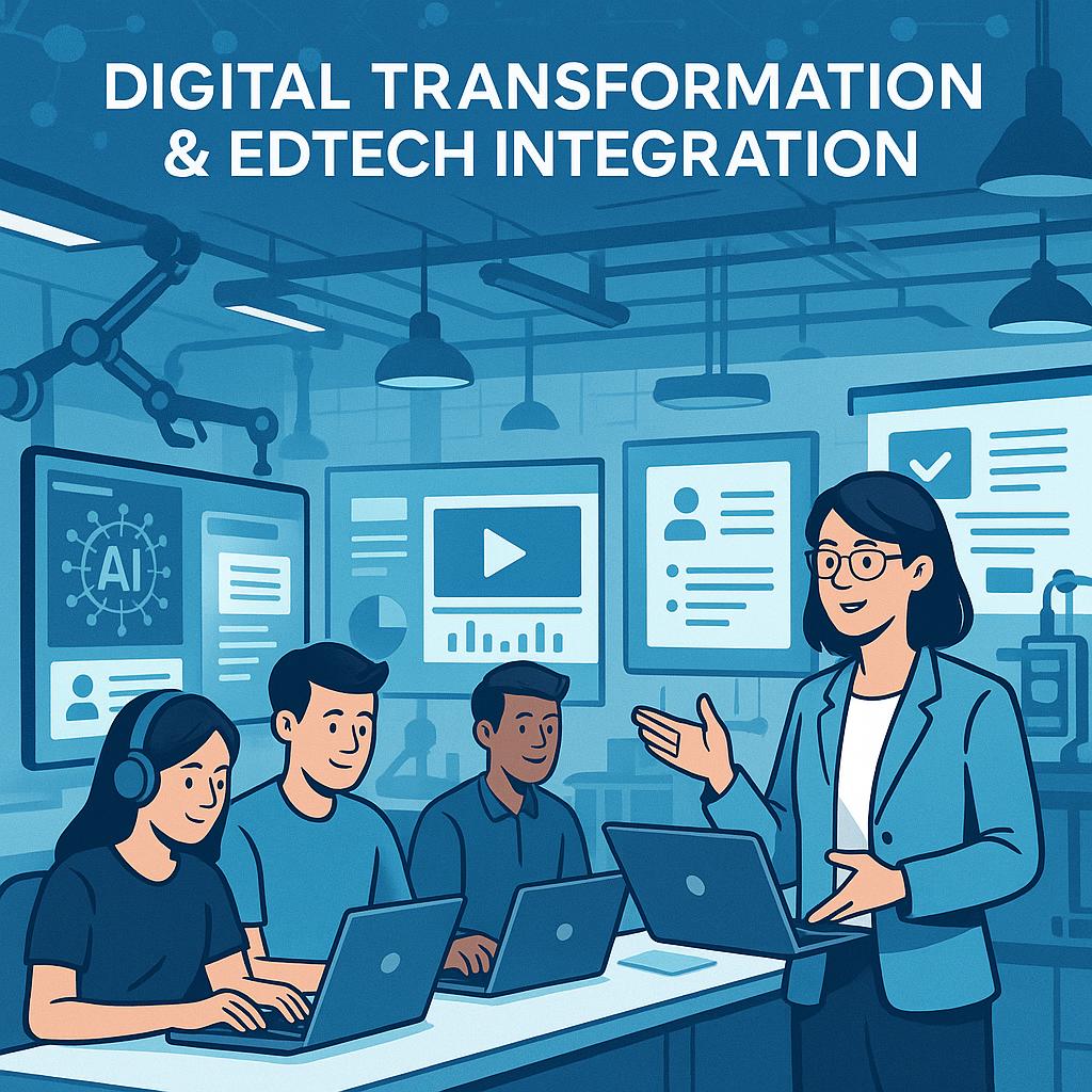Digital Transformation & EdTech Integration 🎯 ObjectiveTo enhance the use of digital technologies in academic delivery, evaluation, and institutional management.⚡Proposed Activities📌 LMS Deployment & Blended Learning Models📌 AI-Driven Learning Analytics Implementation📌 Digital Assessment & Proctoring Systems📌 E-Content Development & MOOCs Creation🚀 Rationale📍 Embracing digital transformation enables institutions to operate effectively, stay competitive, and prepare learners for the digital workplace . Book Appointment Research & Innovation Enhancement Previous Service Industry-Academia Collaboration & Internship Programs Next Service